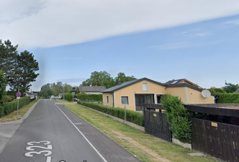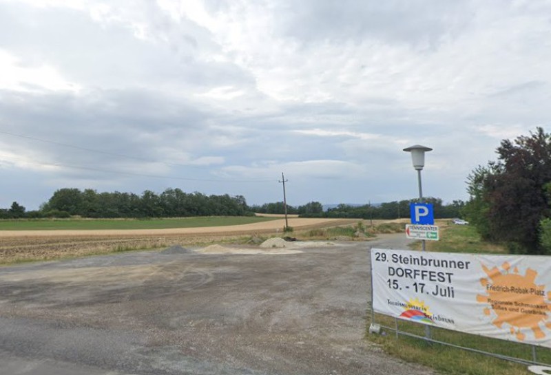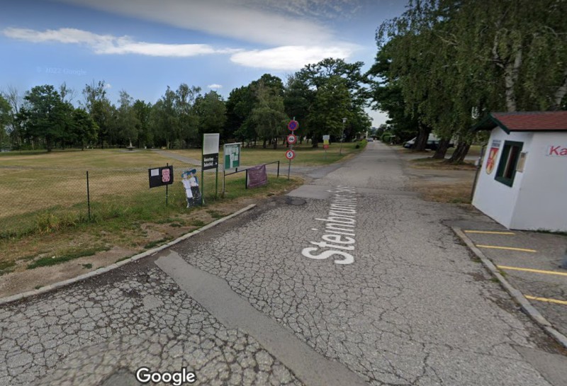 Der Zugang vom Parkplatz zum See soll attraktiver werden. Bäume entlang der Steinbrunner Straße auf dem Grünstreifen, neben dem Gehsteig sorgen für einen Allee-Charakter.